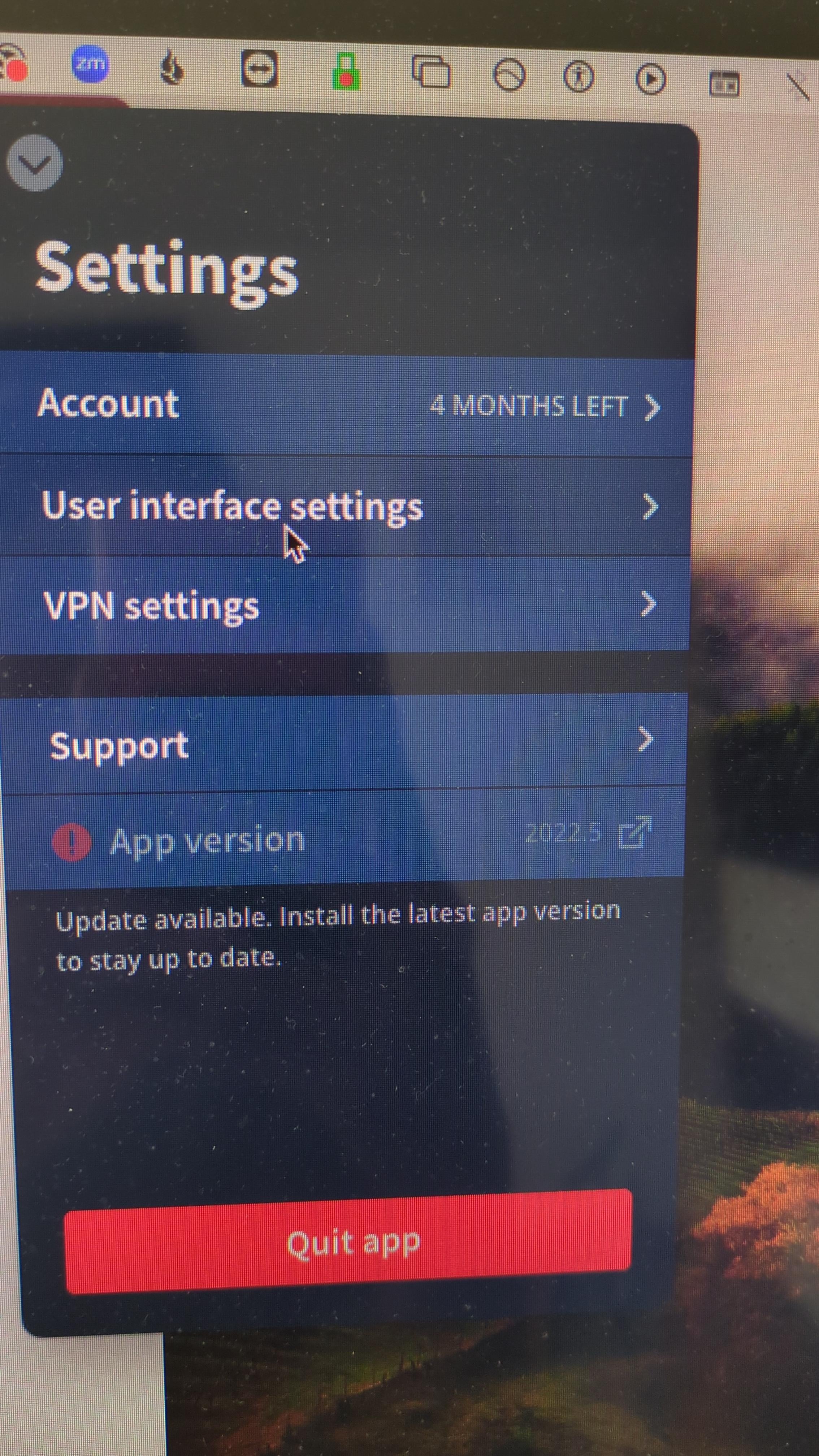 Gebruik split tunneling. Open de Mullvad-app, klik op het tandwiel en vervolgens op split tunneling. Een lijst van je andere geïnstalleerde apps zou verschijnen en dan kies je degene die je tijdelijk zonder VPN wilt gebruiken.